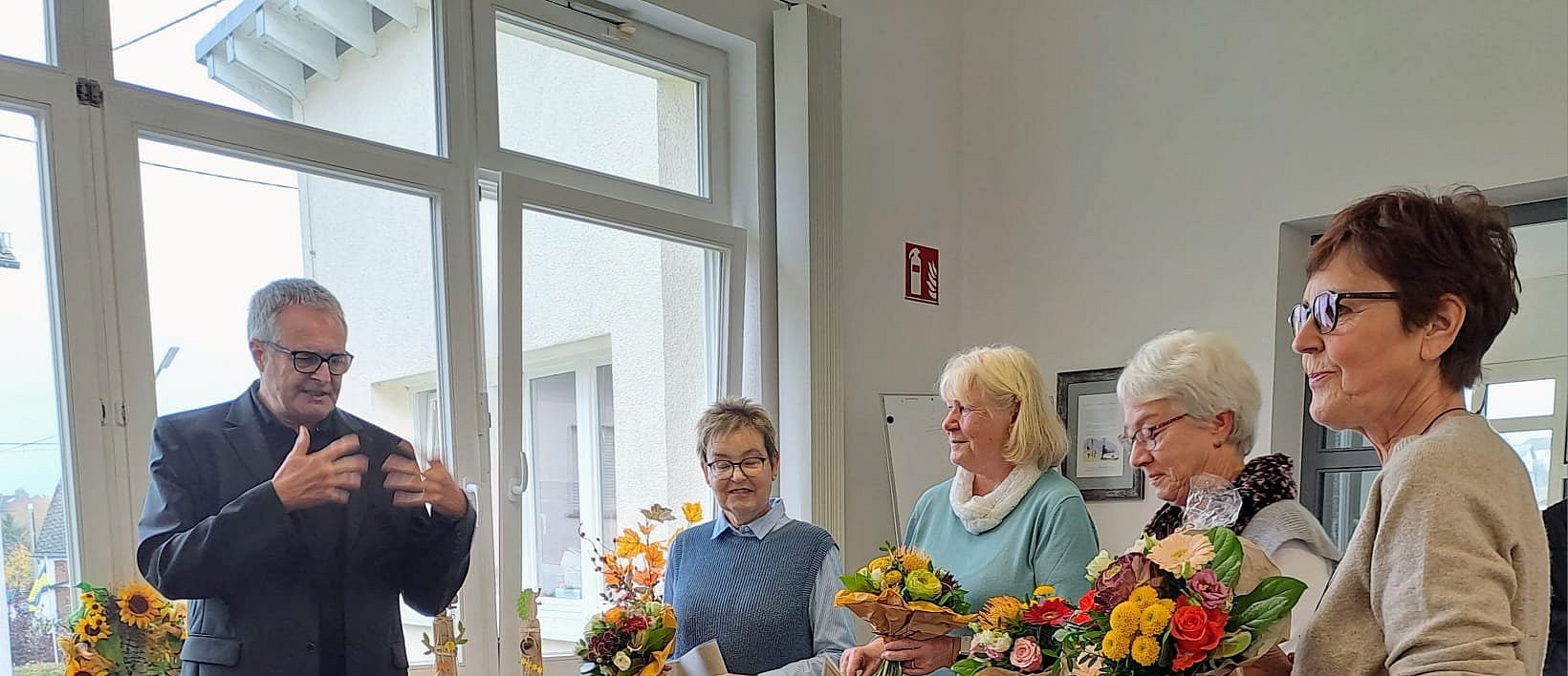 Am Sonntagvormittag lockte die sogenannte „Hubertusmesse“ , die die Jagdhornbläsergruppe Jennerwein mitgestaltete, zahlreiche Gottesdienstbesucher in die St. Laurentius-Kirche. Der Freundes- und Förderkreis lud anschließend zu einem Imbiss u.a. mit Kartoffelsuppe und Wildbratwurst ein, den die Jägerschaft Nentershausen dankenswerterweise zubereitet hatte. Die Frauen des Büchereiteams boten im Jugendheim dazu noch Kaffee und selbstgebackenen Kuchen an. Diese Gelegenheit nutzte Pfarrer Rösch gerne, um vier Mitarbeiterinnen für ihr langjähriges Engagement zu ehren: Marianne Henkes
